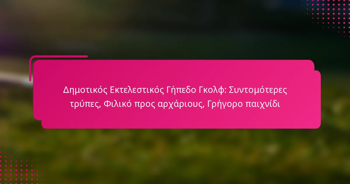 Ένα δημοτικό εκτελεστικό γήπεδο γκολφ έχει σχεδιαστεί για να προάγει το γρήγορο παιχνίδι, διαθέτοντας πιο σύντομες τρύπες που απευθύνονται σε αρχάριους και σε όσους αναζητούν έναν πιο γρήγορο γύρο. Αυτή η διάταξη επιτρέπει στους παίκτες να ολοκληρώνουν τα παιχνίδια τους σε λιγότερο χρόνο, καθιστώντας το ιδανική επιλογή για πολυάσχολα άτομα ή οικογένειες που αναζητούν μια αναψυχή.